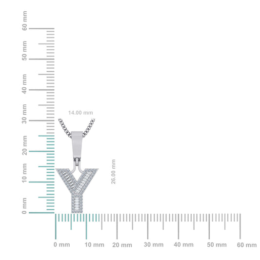 10K White Gold Baguette Initial Y Pendant 1/4 Ctw