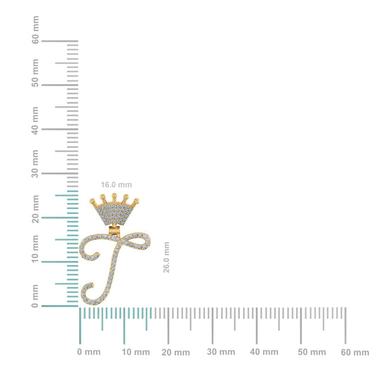 10K Yellow Gold Round Diamond Crown T Letter Initial Pendant 1/5 Ctw