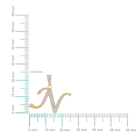 10K Yellow Gold Round Diamond N Letter Initial Pendant 1/10 Ctw