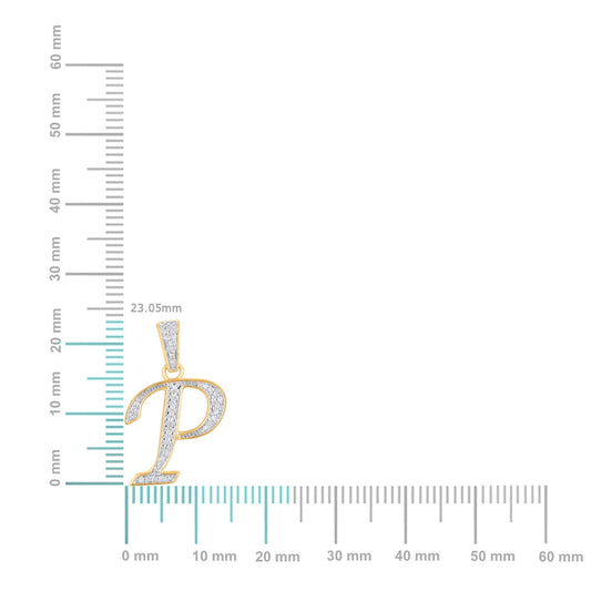 10K Yellow Gold Round Diamond P Letter Initial Pendant 1/10 Ctw