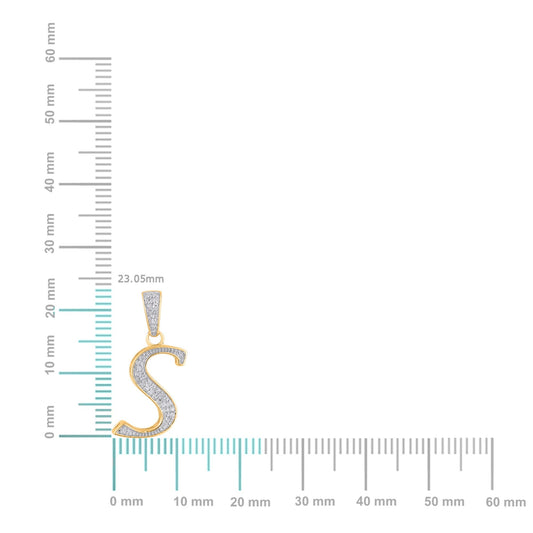 10K Yellow Gold Round Diamond S Letter Initial Pendant 1/10 Ctw
