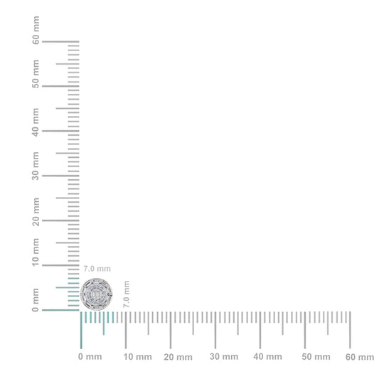10K White Gold Round Baguette Diamond Cluster Stud Earrings 1/5 Ctw