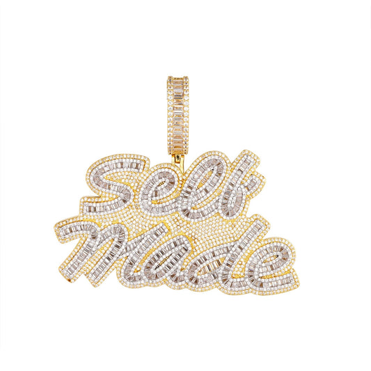 Sterling Silver Round Moissanite KING Word Designer Pendant 12 Ctw