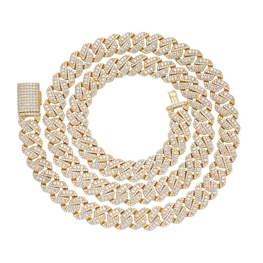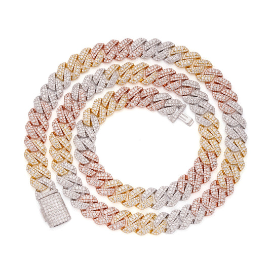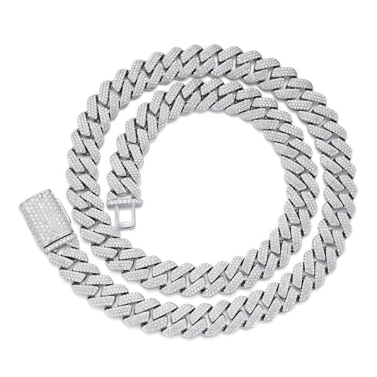 Sterling Silver Moissanite 13mm Square Cuban Chain 22 Inch Necklace 18-1/4 Ctw