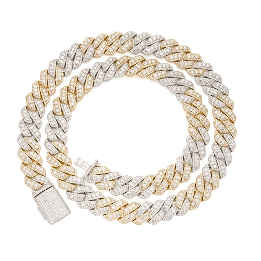 Sterling Silver 14mm Moissanite Emerald Miami Cuban Chain 20 Inch Necklace 1/3 Ctw
