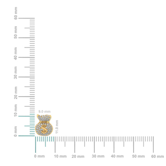10K Yellow Gold Round Diamond Money Dollar Bag Designer Stud Earrings 1/6 Ctw