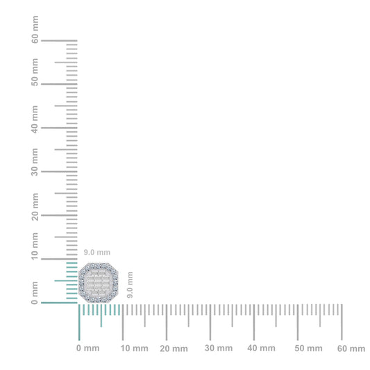 14K White Gold Round Baguette Diamond Square Shape Cluster Stud Earring 1/4 Ctw