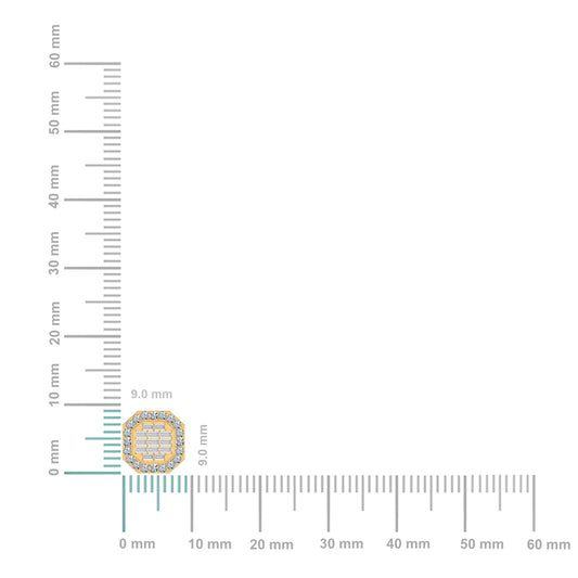 14K Yellow Gold Round Baguette Diamond Cluster Stud Earring 1/6 Ctw