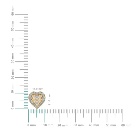 10K Yellow Gold Round Baguette Diamond Heart Designer Earring 5/8 Ctw