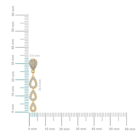 10K Yellow Gold Round Diamond Drop Shape Dangling Earrings 1/2 Ctw