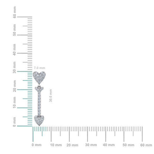 10K White Gold Round Diamond Heart Dangling Earrings 3/4 Ctw