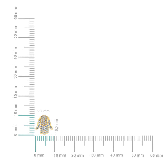 14K Yellow Gold Round Baguette Diamond Hamza Hand Religious Stud Earrings 1/5 Ctw
