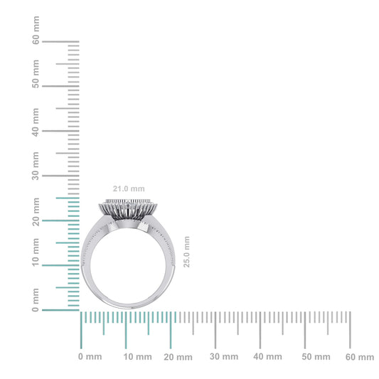 10K White Gold Round Diamond Floral Size 7 Head Ladies Ring 2 Ctw