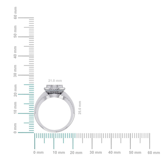 10K White Gold Round Diamond Square Shape Size 7 Head Ladies Ring 1 Ctw