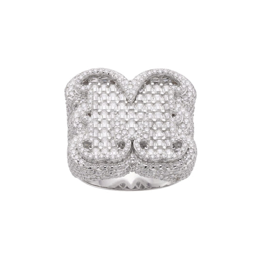 Sterling Silver Round Baugette Moissanite Albhabet M letter Initial Size 10 Men Ring 9-1/8 Ctw