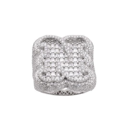 Sterling Silver Round Baugette Moissanite Albhabet N letter Initial Size 10 Men Ring 8-3/4 Ctw