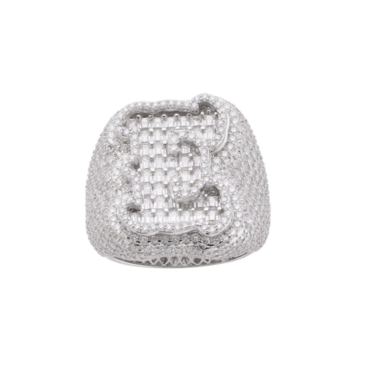 Sterling Silver Round Baugette Moissanite Albhabet E letter Initial Size 10 Men Ring 7-1/4 Ctw
