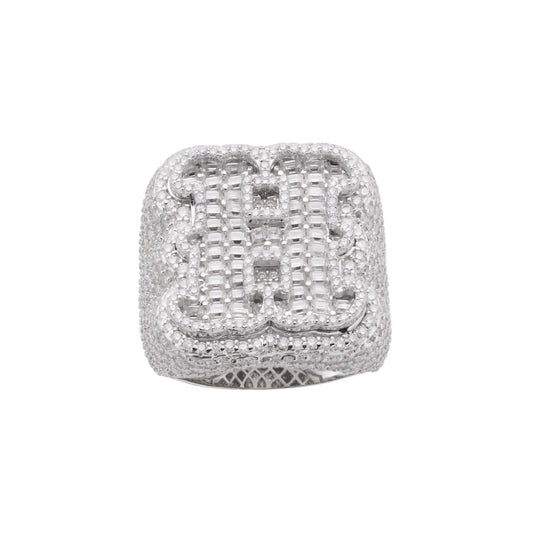 Sterling Silver Round Baugette Moissanite Albhabet H letter Initial Size 10 Men Ring 7-7/8 Ctw