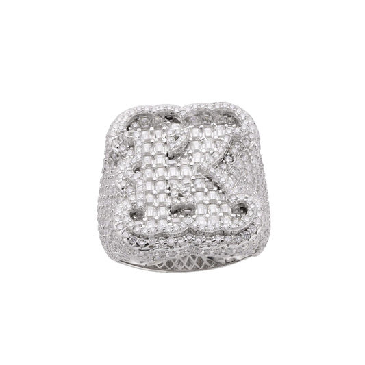 Sterling Silver Round Baugette Moissanite Albhabet K letter Initial Size 10 Men Ring 7-1/2 Ctw