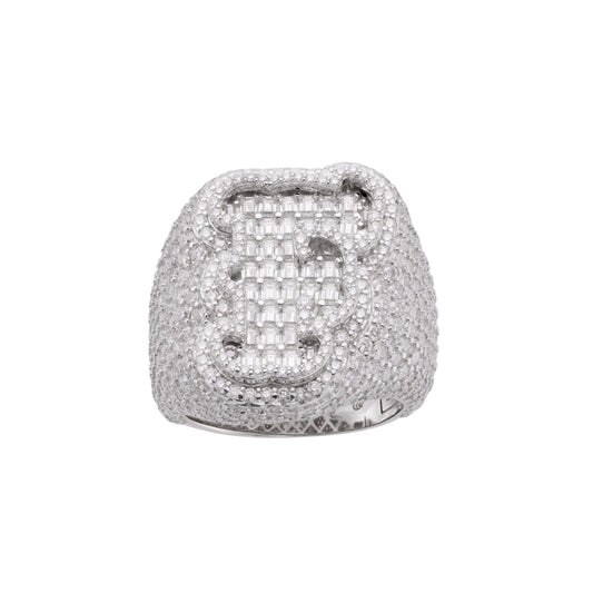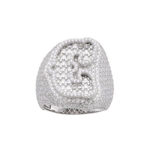 Sterling Silver Round Baugette Moissanite Albhabet F letter Initial Size 10 Men Ring 7-1/4 Ctw