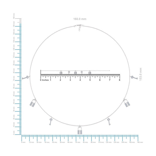 14K White Gold Lock & Key Link Necklace Bracelet Jewelry Set 1/2 Ctw