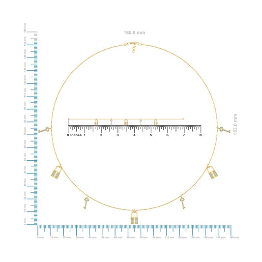14K Yellow Gold Lock & Key Link Necklace Bracelet Jewelry Set 1/2 Ctw