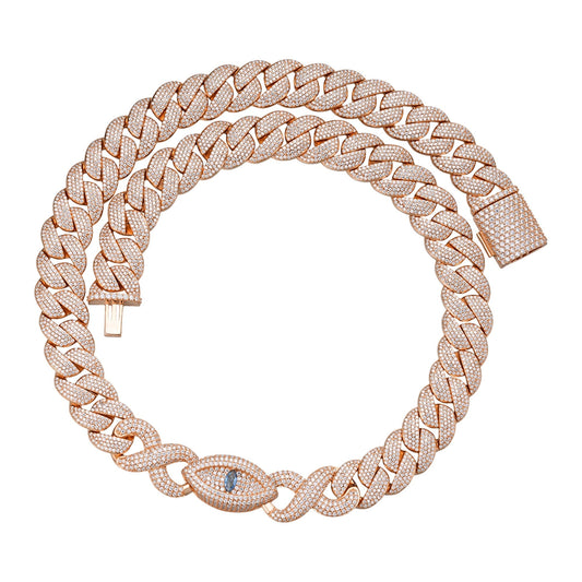 Sterling Silver Round Moissanite 15mm Inifinity Cuban With Evil Eye Designer 22 Inch Men Necklace 27-1/8 Ctw