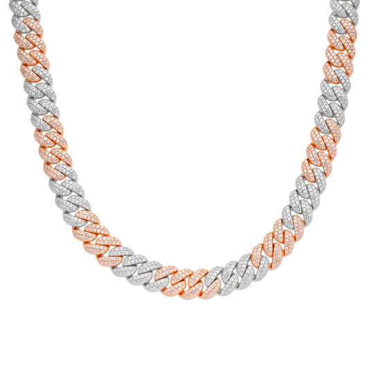 Sterling Silver Moissanite 10mm Cuban Chain 22 Inch Necklace 13-5/8 Ctw