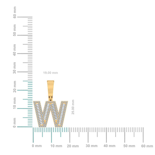 10K Yellow Gold Baguette Diamond Initial W Letter Pendant 5/8 Ctw