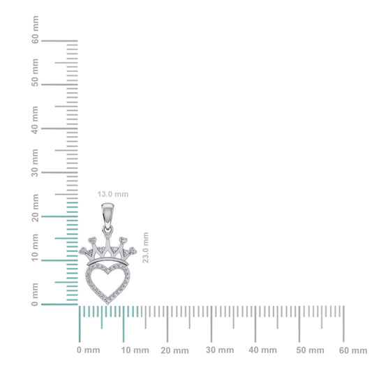 10K White Gold Round Diamond Heart Crown Pendant 1/10 Ctw