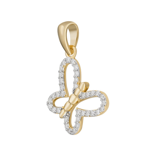 Sterling Silver Round Moissanite Butterfly Animal Pendant 1/3 Ctw