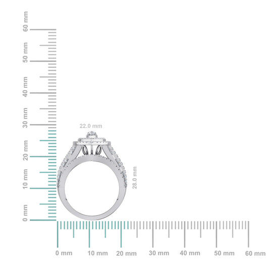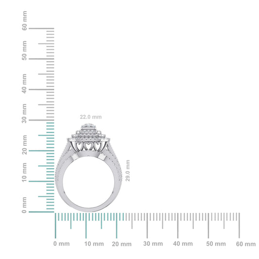 10K White Gold Round Diamond Square Shape Designer Womens Ring Size 7 1-5/8 Ctw