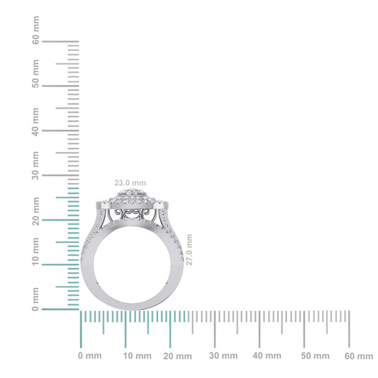 10K White Gold Round Diamond Heart Shape Designer Womens Ring Size 7 2-3/8 Ctw
