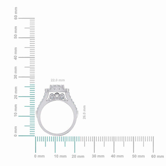 10K White Gold Round Diamond Halo Big Bridal Cluster Ring 2-1/6 Ctw
