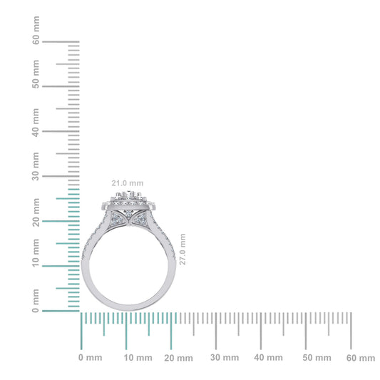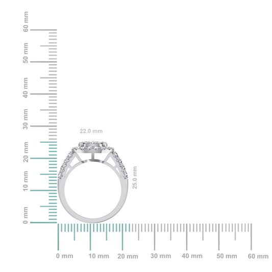14K White Gold Round Moissanite Halo Floral WoMen Size 7 Bridal Ring 1-7/8 Ctw