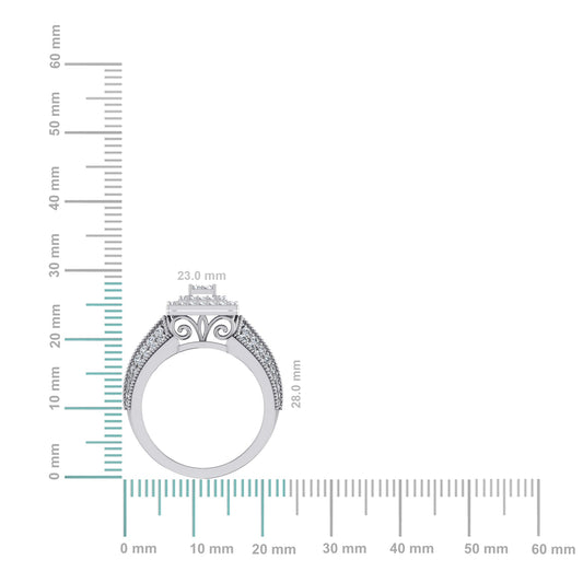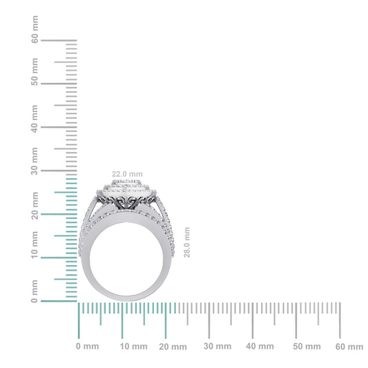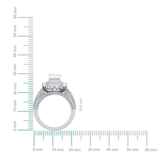 10K White Gold Round Diamond Square Shape Size 7 Head Ladies Ring 2 Ctw
