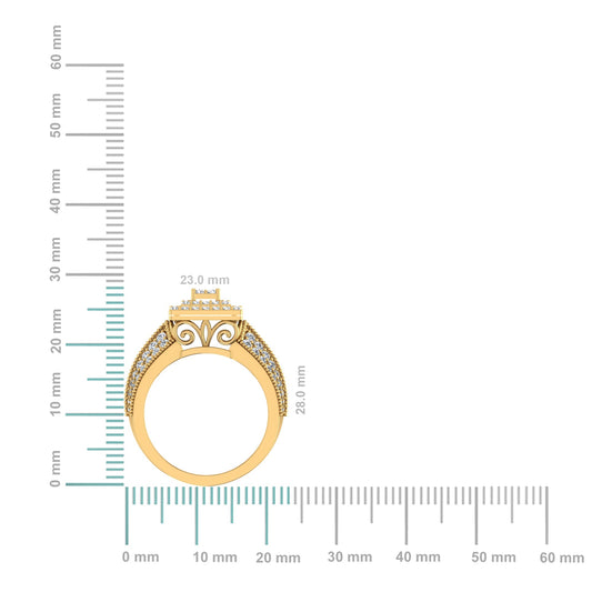 10K Yellow Gold Round Diamond Designer Size 7 Head Ladies Ring 1-1/2 Ctw
