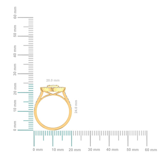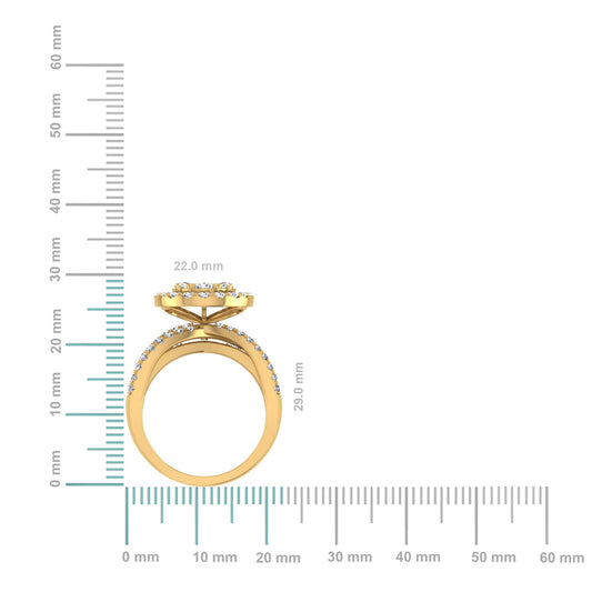14K Yellow Gold Round Moissanite Halo Floral Cluster WoMen Size 7 Bridal Ring 1-7/8 Ctw