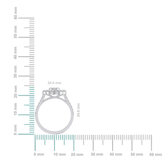 14K White Gold Round Moissanite Halo Floral WoMen Size 7 Bridal Ring 1-7/8 Ctw