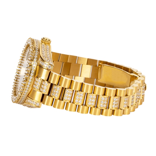 Moissanite Stainless Steel Men Yellow Steel Band Watch