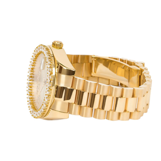 Moissanite Stainless Steel Gold Dial Men Yellow Steel Band Watch