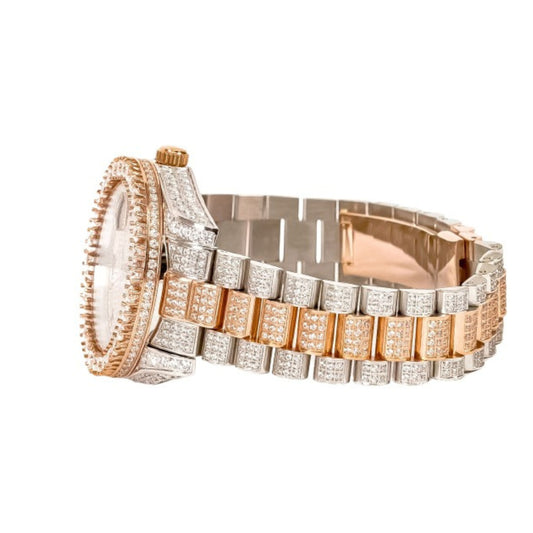 Moissanite Stainless Steel Men Rose White Two Tone Steel Band Watch