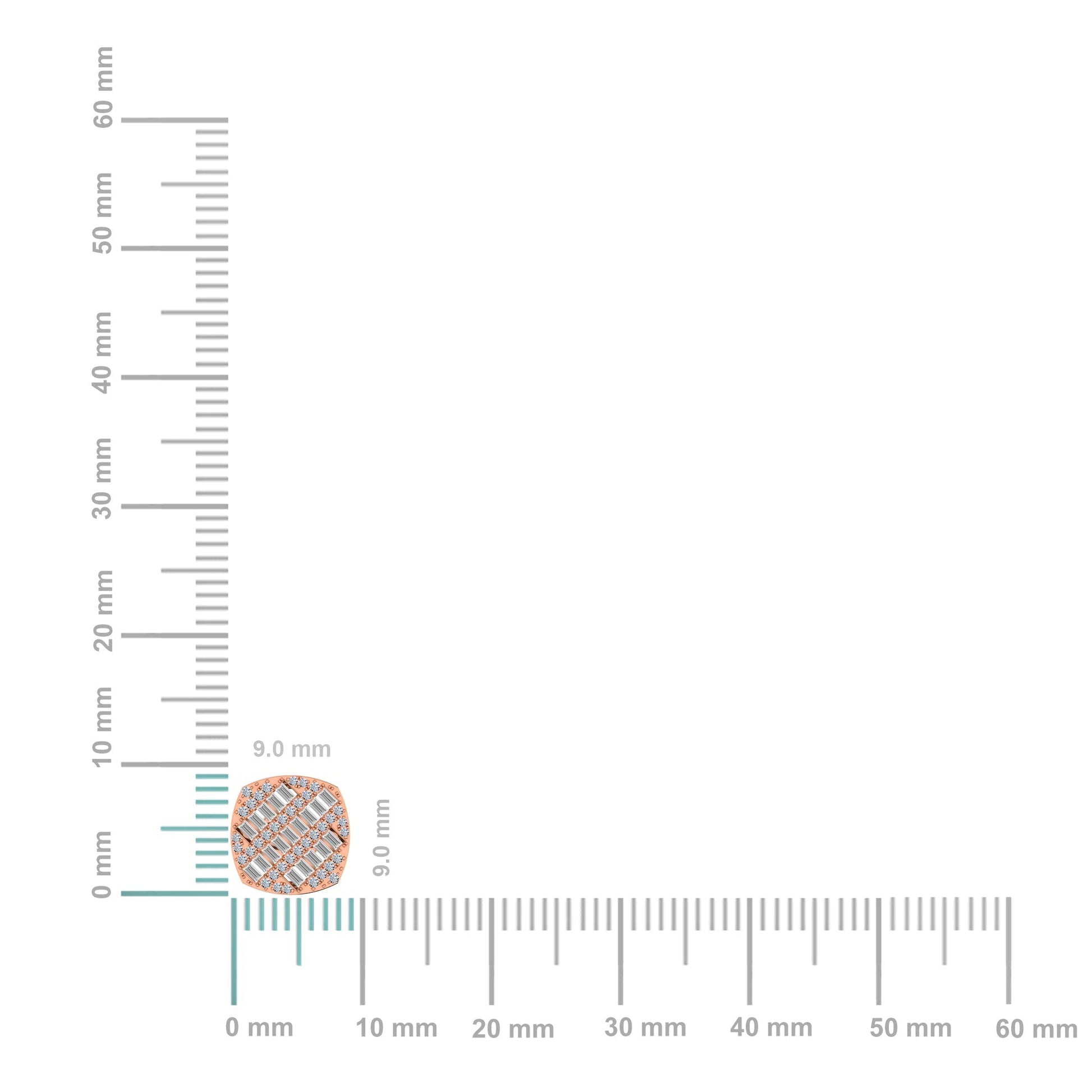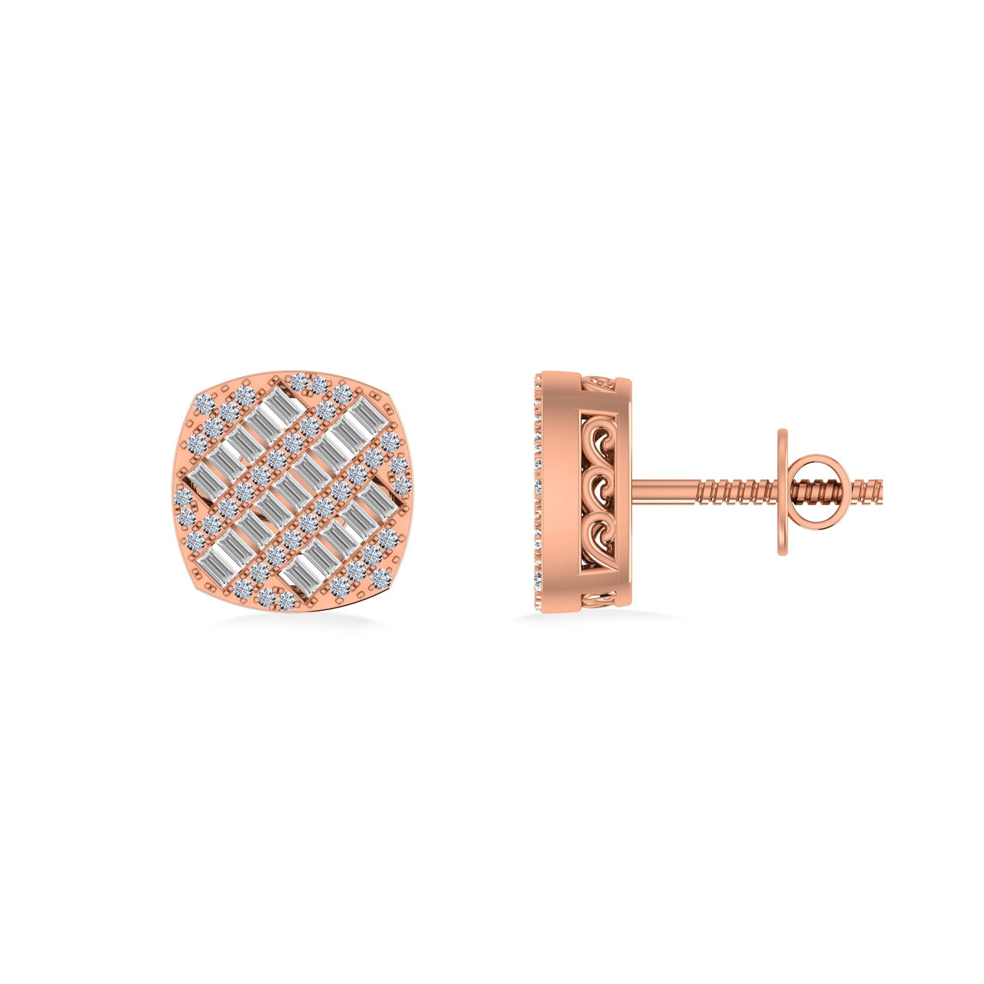 10K Rose Gold Round Baguette Diamond Square Shape Designer Mens Stud Earring 1/3 Ctw