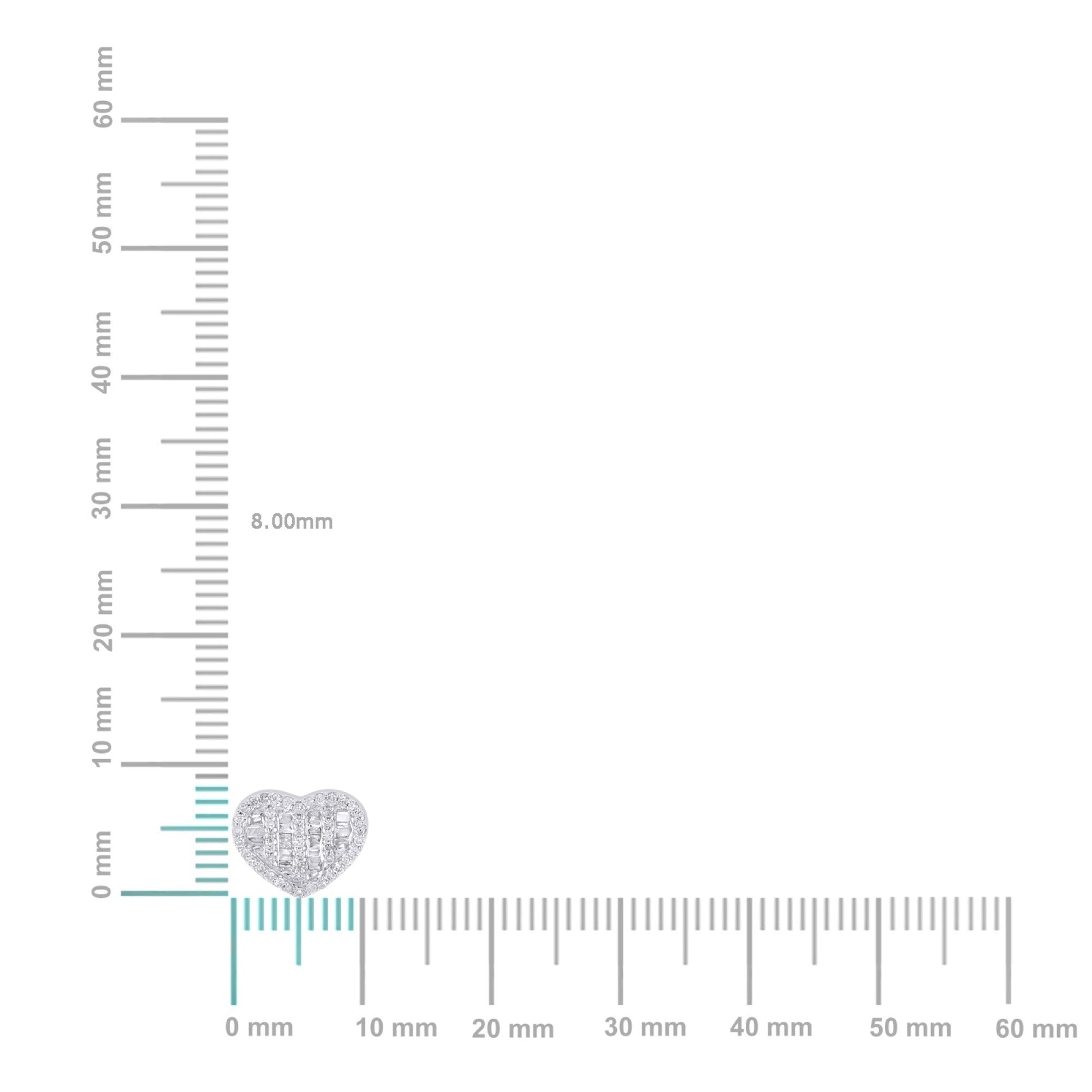 TreasureBox Presents: 10K White Gold Round Baguette Diamond Heart Earring – 1/3 Ctw