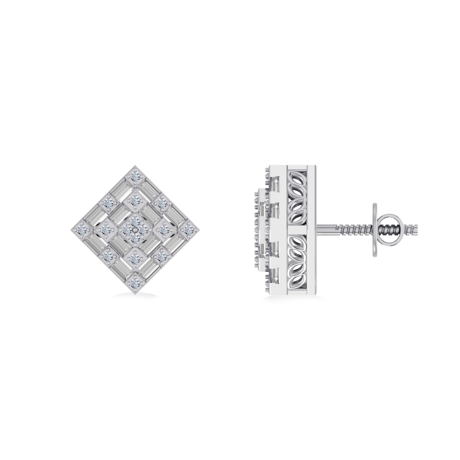10K White Gold Round Baguette Diamond Square Shape Designer Mens Stud Earring 1/3 Ctw