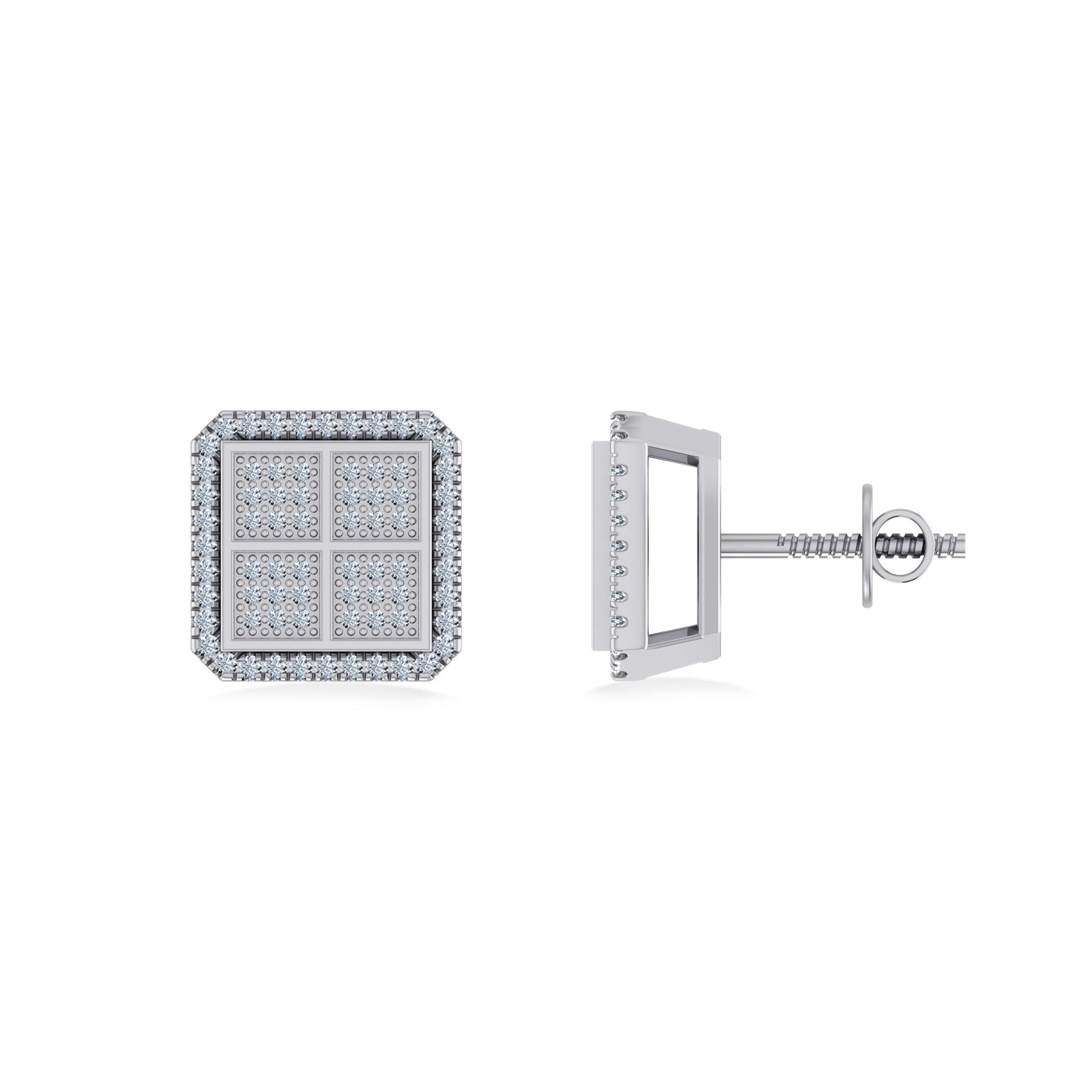 10K White Gold Round Baguette Diamond Square Shape Designer Mens Stud Earring 1/5 Ctw