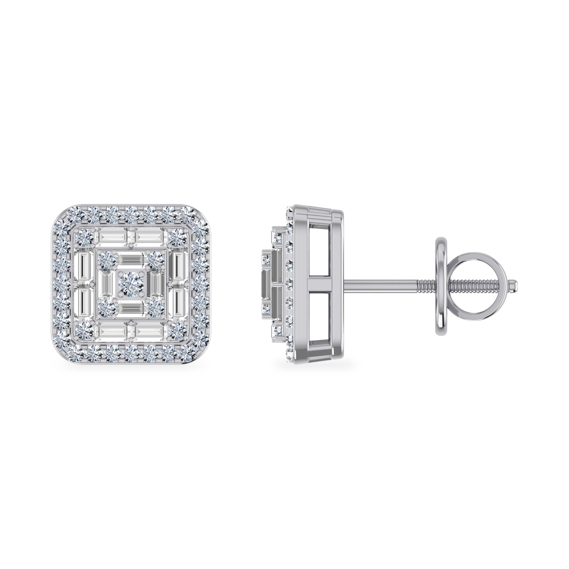 The TreasureBox 10K White Gold Round Baguette Diamond Square Shape Stud Earrings are a stunning fusion of classic elegance and modern design. Their unique diamond combination and geometric shape make them a perfect addition to any jewelry collection or a thoughtful gift for someone special.
