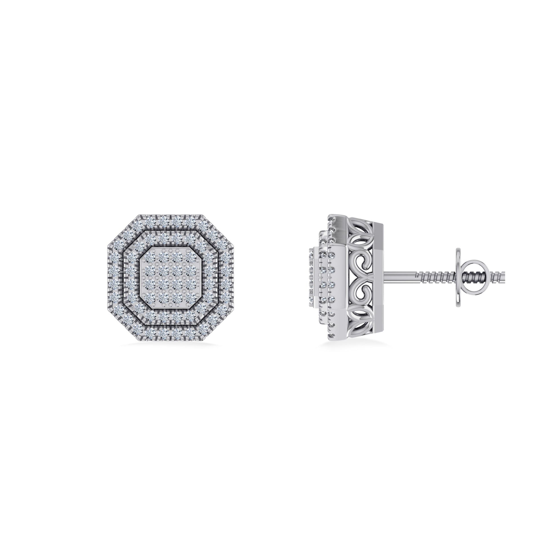 Make a bold yet sophisticated statement with these designer men's stud earrings, meticulously crafted in sleek 10K white gold. Featuring 1/5 carat of dazzling round-cut diamonds, each earring is encircled by a halo of smaller diamonds, amplifying the brilliance and creating an eye-catching design. The combination of round diamonds and the halo setting gives these studs a refined, modern appeal, perfect for the fashion-forward man.