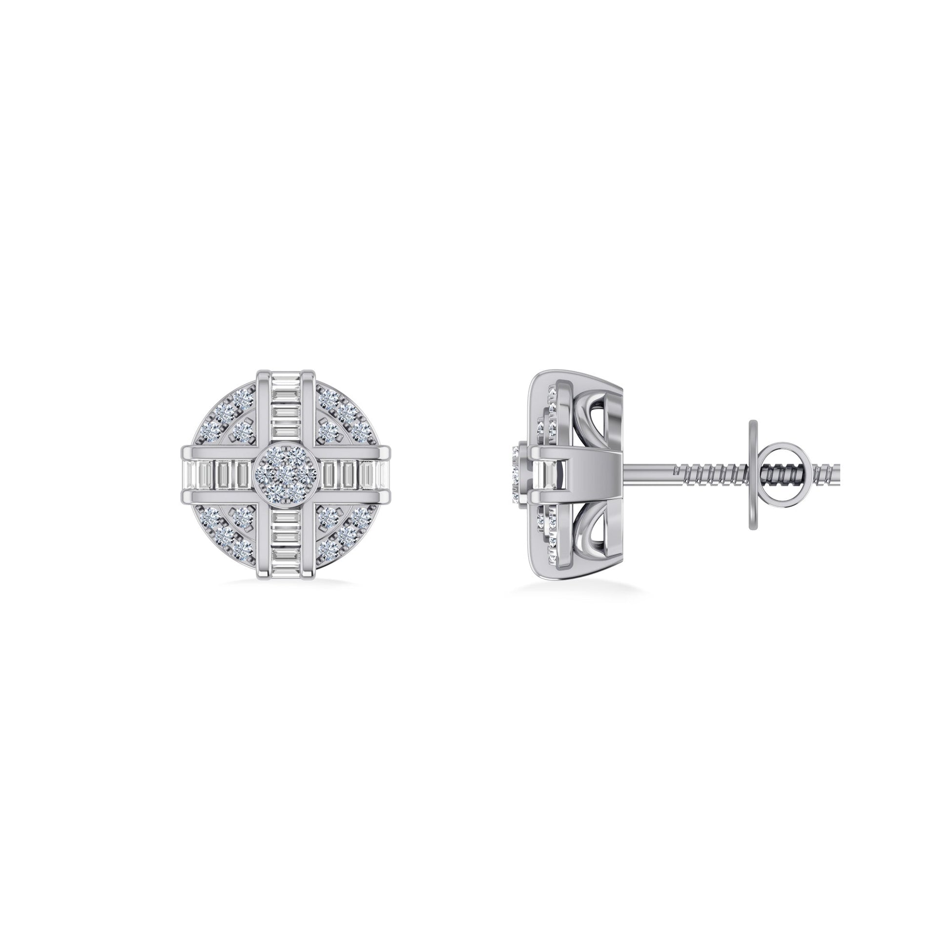 10K White Gold Round Diamond Designer Mens Stud Earring 1/4 Ctw