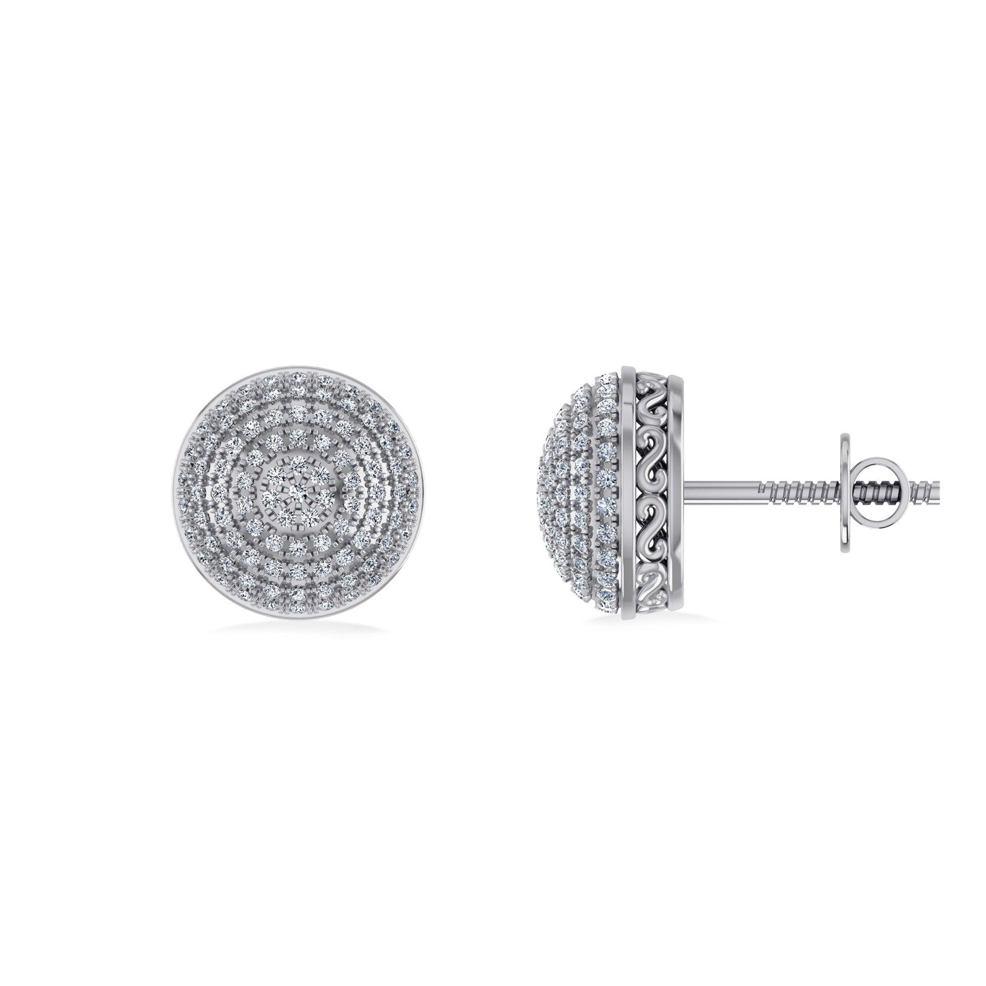 10K White Gold Round Diamond Designer Mens Stud Earring 3/8 Ctw
